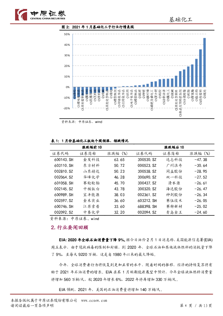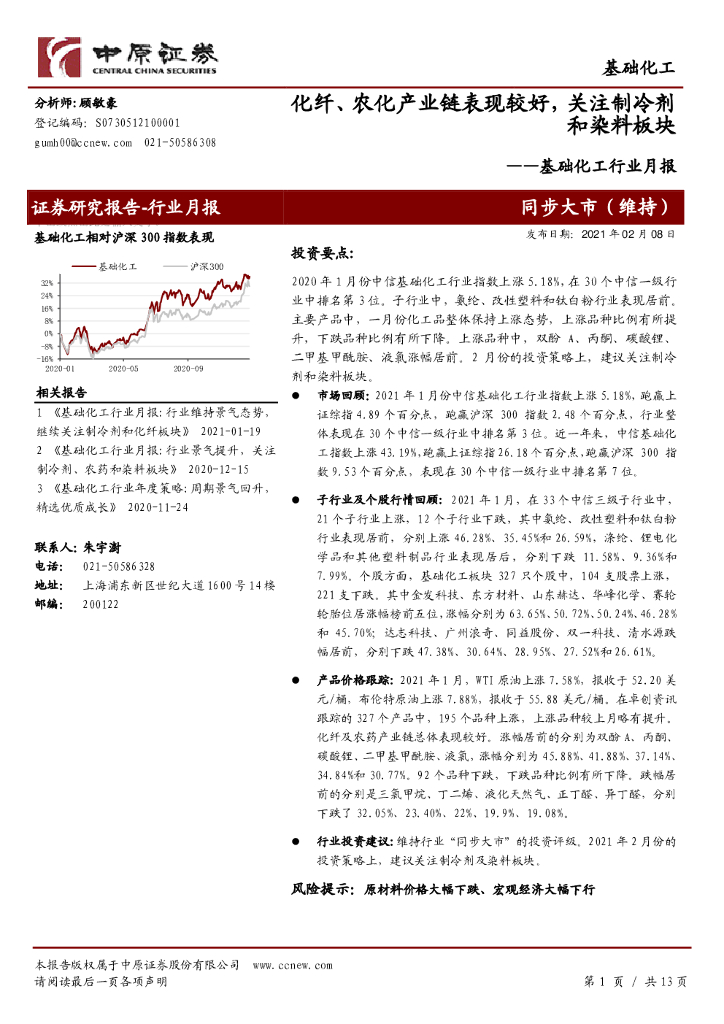 中原证券:基础化工行业月报:化纤、农化产业链表现较好,关注制冷剂和染料板块.pdf