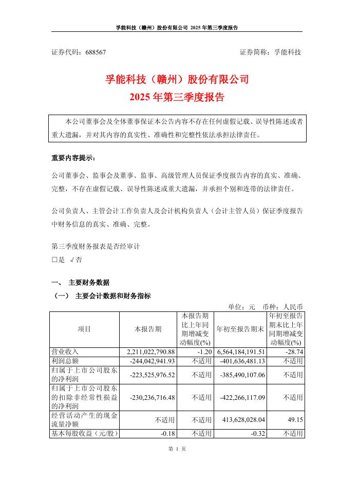 688567-孚能科技:孚能科技2025年第三季度报告.pdf