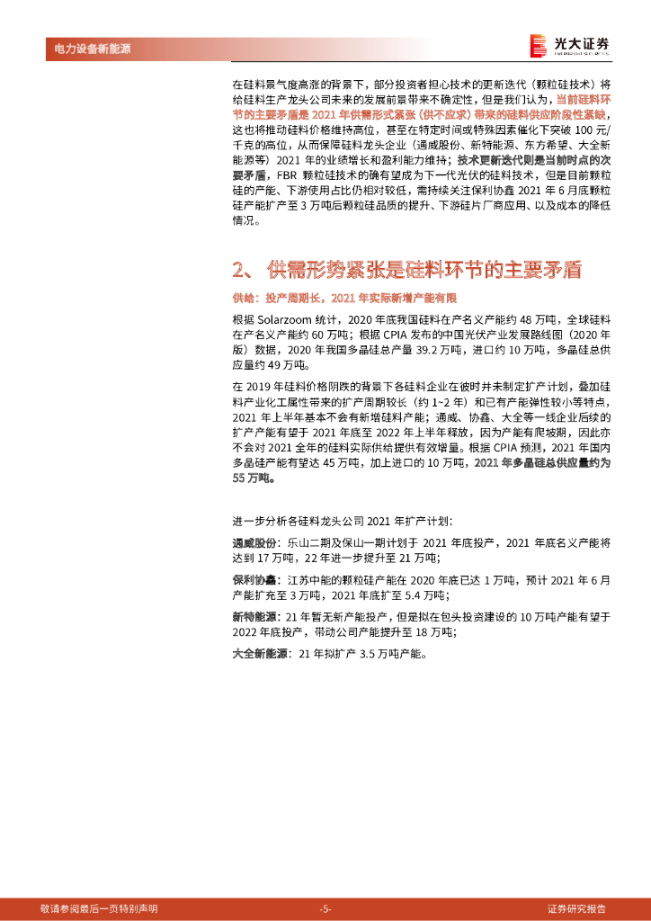 光大证券:光伏行业系列专题报告四:硅料供给偏紧贯穿全年,颗粒硅短期尚难构成挑战.pdf