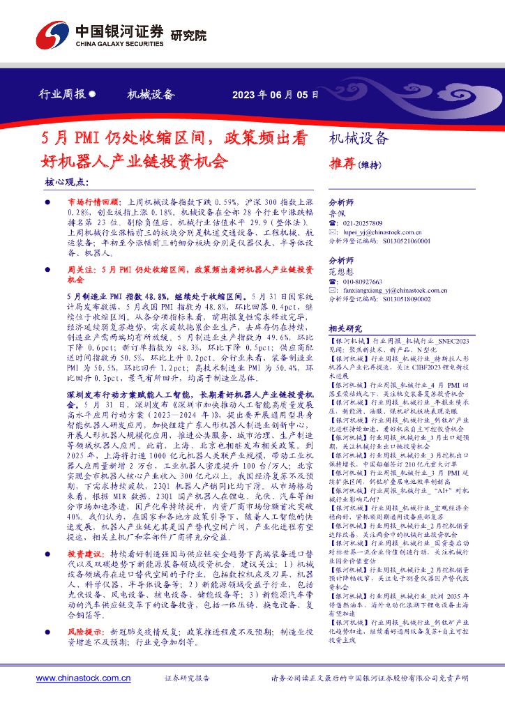 中国银河:机械设备行业周报:5月PMI仍处收缩区间,政策频出看好机器人产业链投资机会.pdf