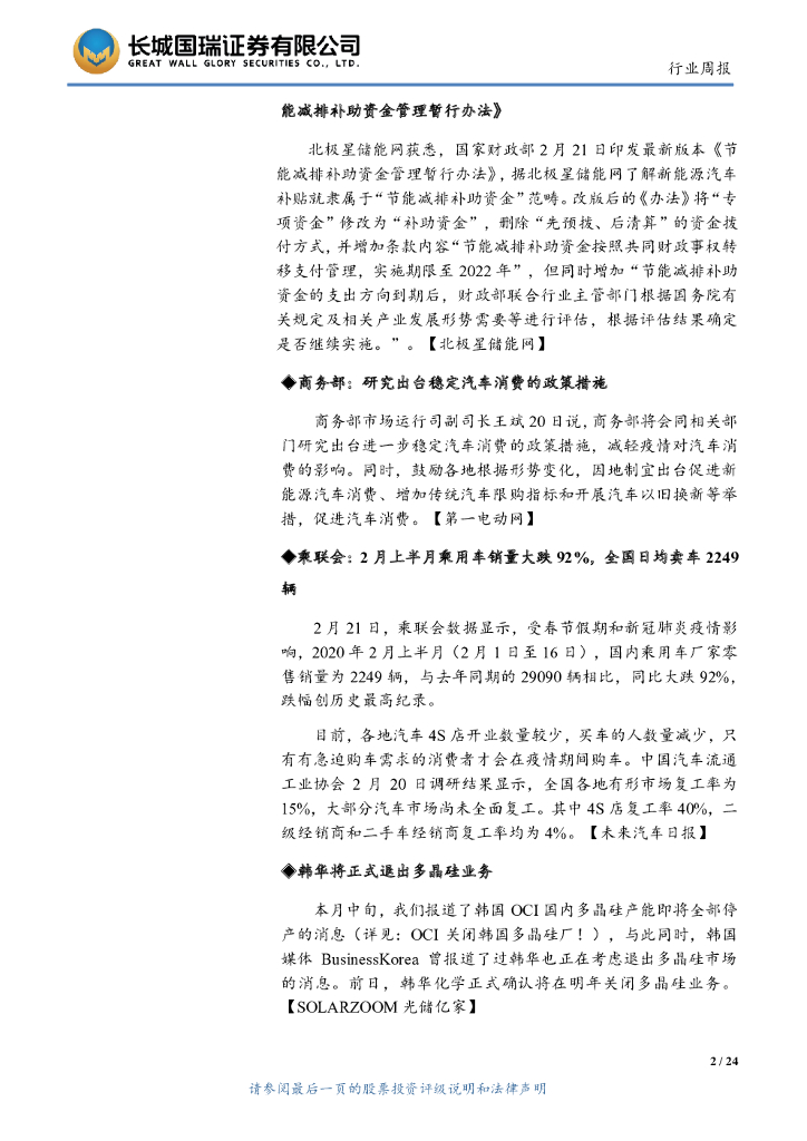长城国瑞证券:电气设备与新能源行业双周报2020年第4期(总第164期):稳定汽车消费政策可期.pdf