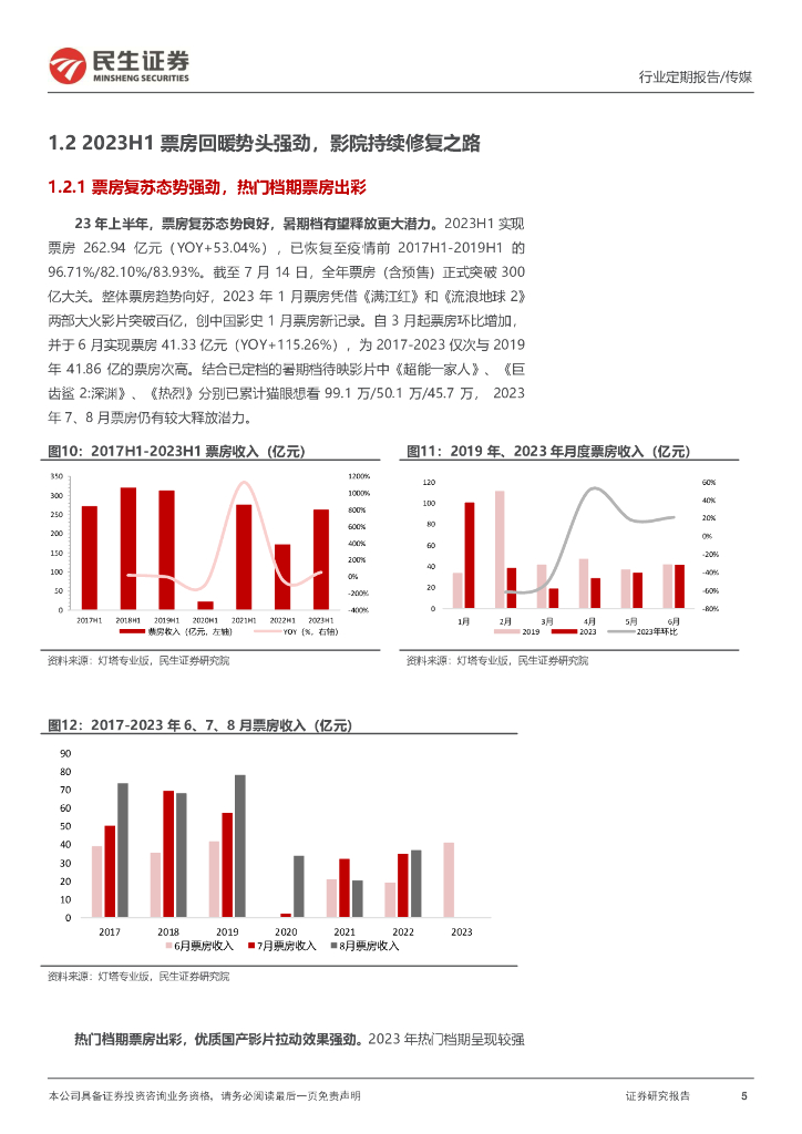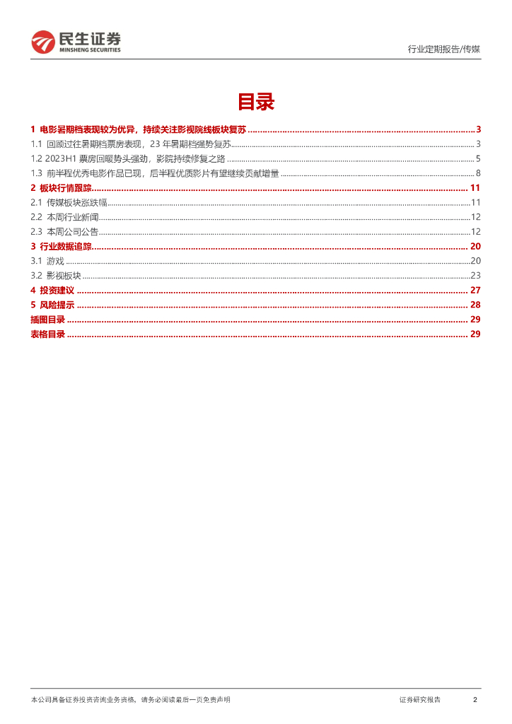 民生证券:传媒互联网行业周报:电影暑期档表现优异,关注影视院线板块复苏.pdf
