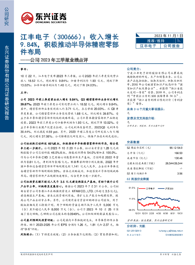东兴证券:江丰电子(300666)-公司2023年三季报业绩点评:收入增长9.84%,积极推动半导体精密零部件布局.pdf