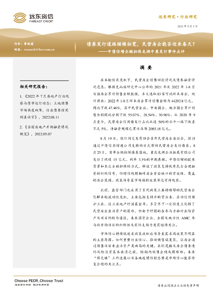 远东资信:中债信增全额担保龙湖中票发行事件点评:债券发行道路继续拓宽,民营房企能否迎来春天?.pdf