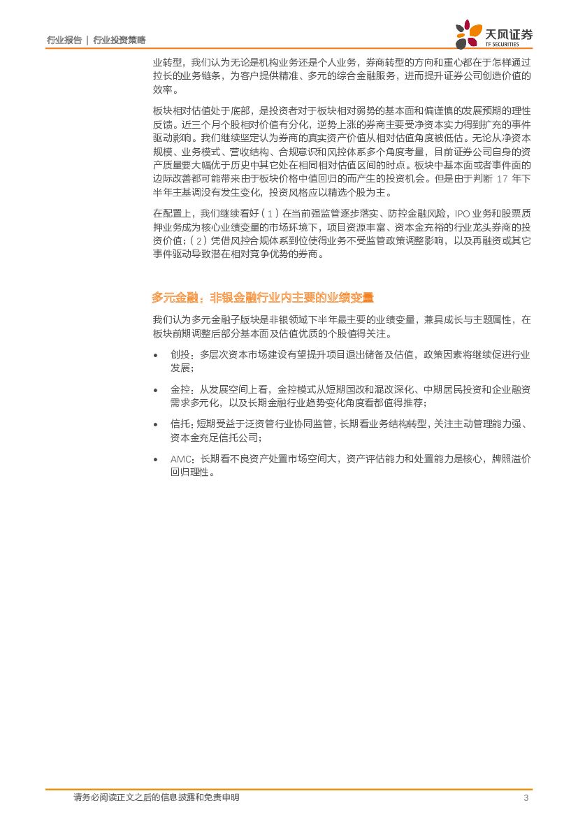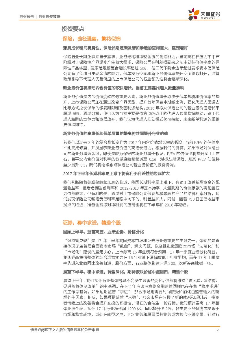 天风证券:非银金融行业17年中期投资策略:稳中求进,转型和升级中寻找个股的投资机会.pdf