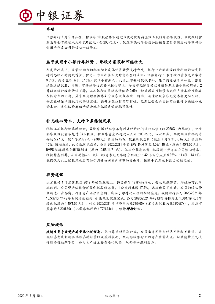 中银证券:江苏银行(600919)-配股补充核心资本,关注落地进程.pdf