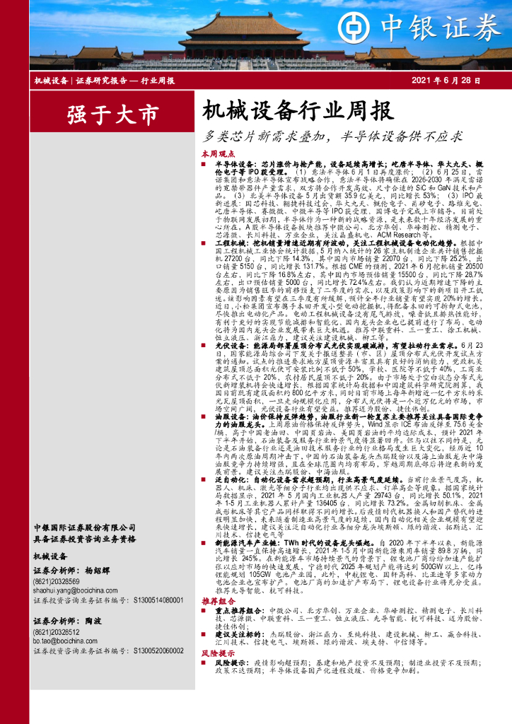 中银证券:机械设备行业周报:多类芯片新需求叠加,半导体设备供不应求.pdf
