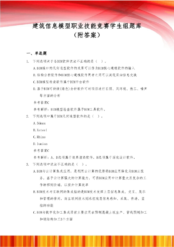 BIM职业技能竞赛学生组题库(附答案).pdf