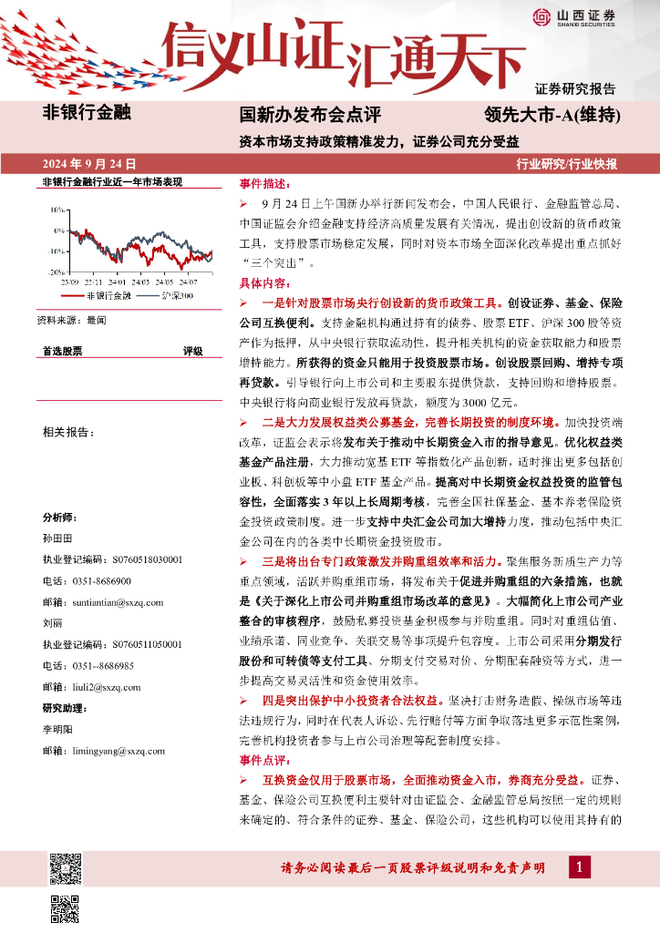 山西证券:非银行金融:国新办发布会点评-资本市场支持政策精准发力,证券公司充分受益.pdf