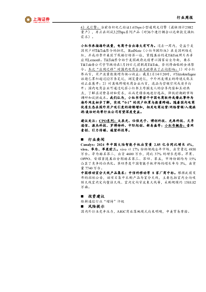 上海证券:通信行业周报:CPO引领数据互联发展热潮,多环节设备商有望受益.pdf