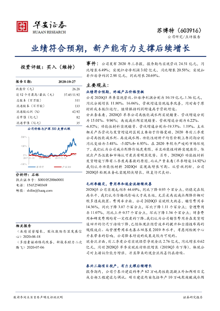 华安证券:苏博特(603916)-业绩符合预期,新产能有力支撑后续增长.pdf