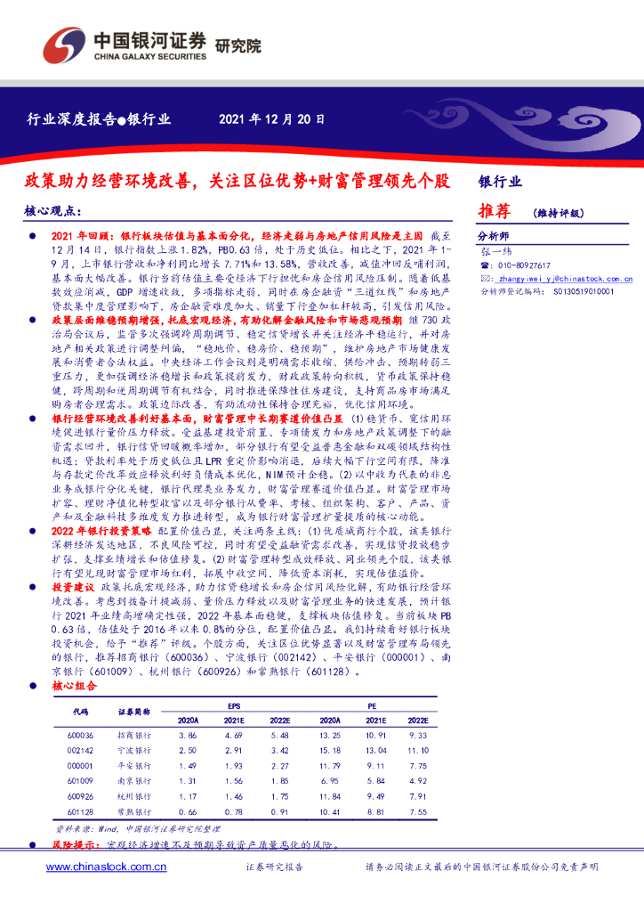 中国银河:银行业:政策助力经营环境改善,关注区位优势+财富管理领先个股.pdf