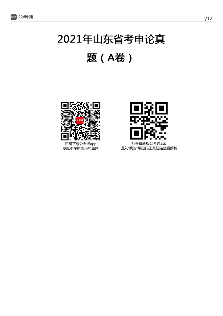2021年山东公务员考试《申论》试题(A类).pdf