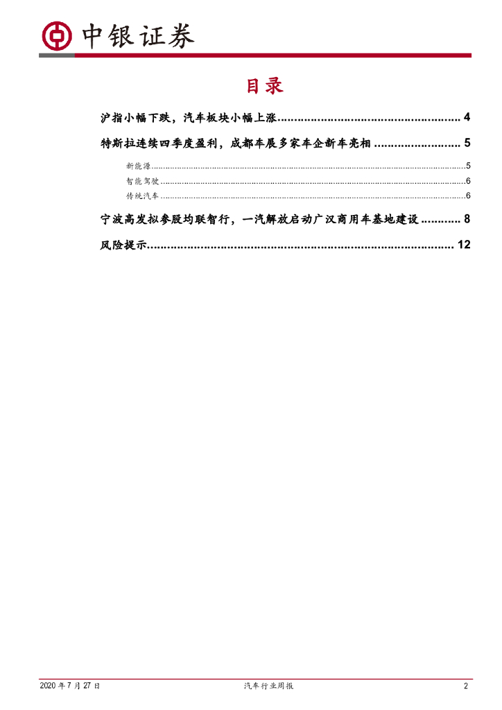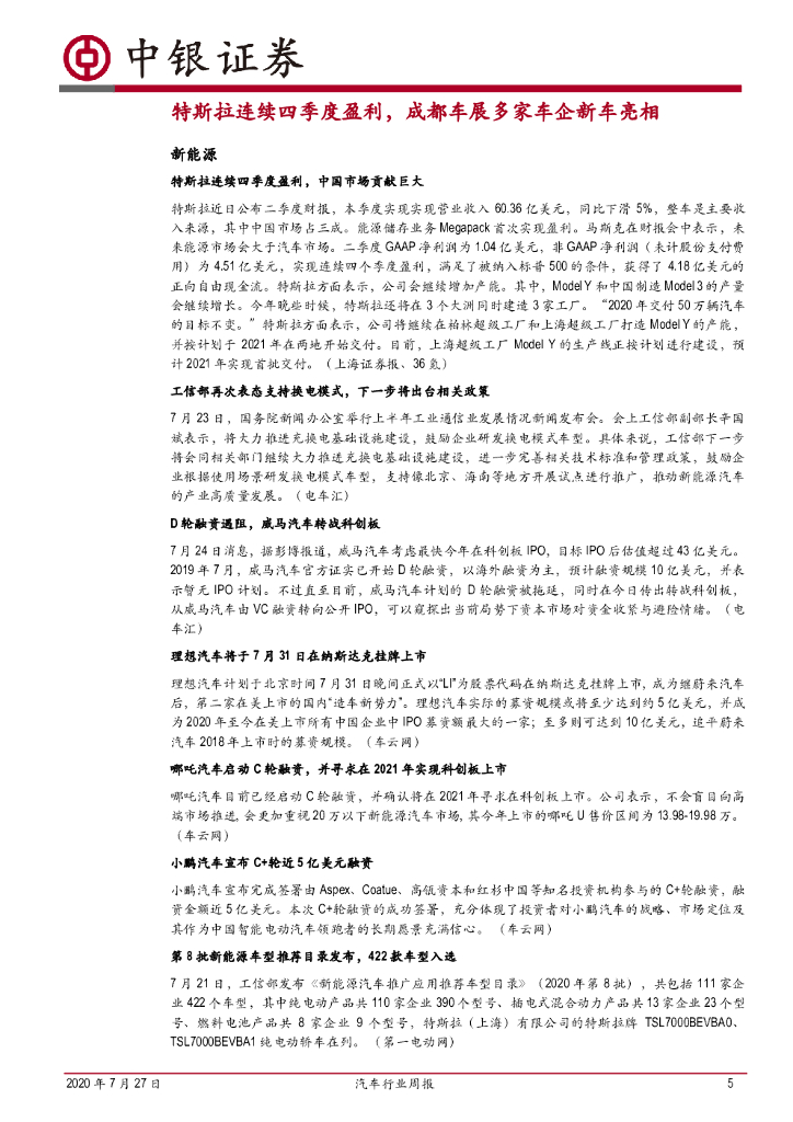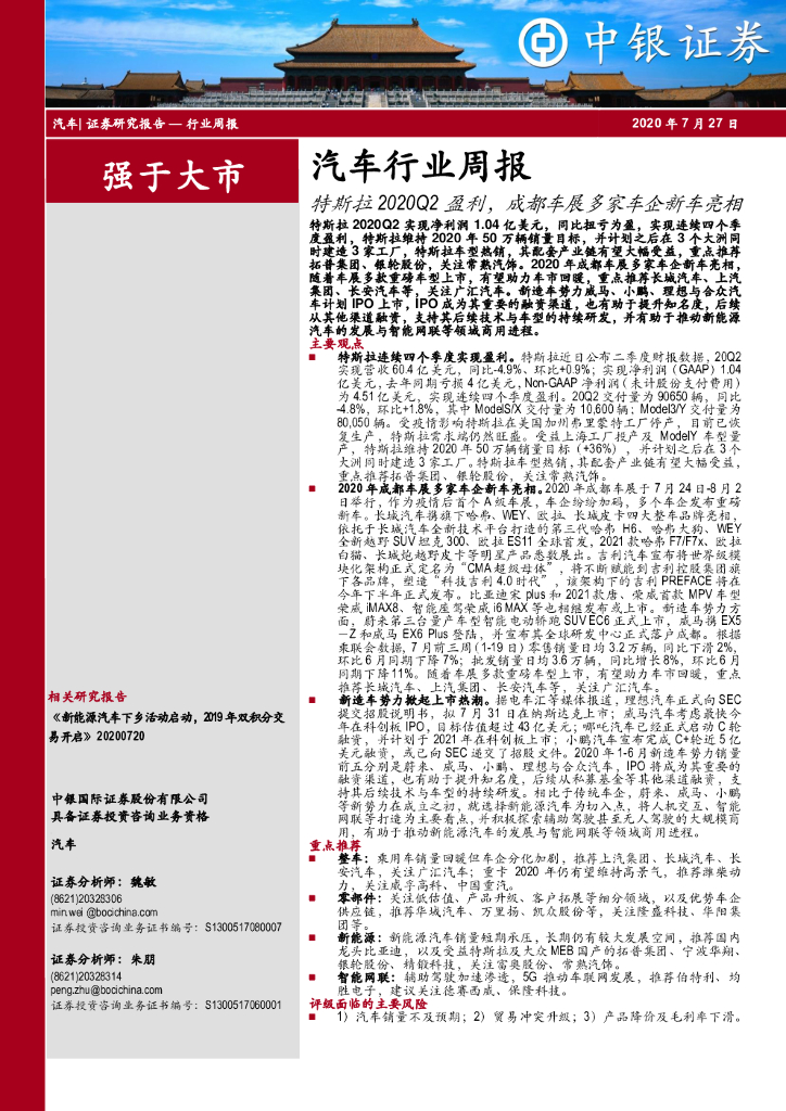 中银证券:汽车行业周报:特斯拉2020Q2盈利,成都车展多家车企新车亮相.pdf