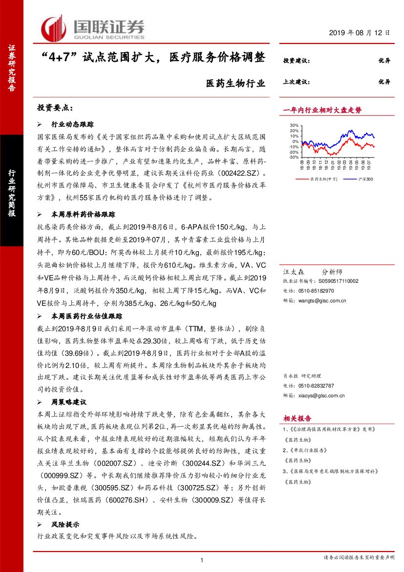 国联证券:医药生物行业:“4+7”试点范围扩大,医疗服务价格调整.pdf