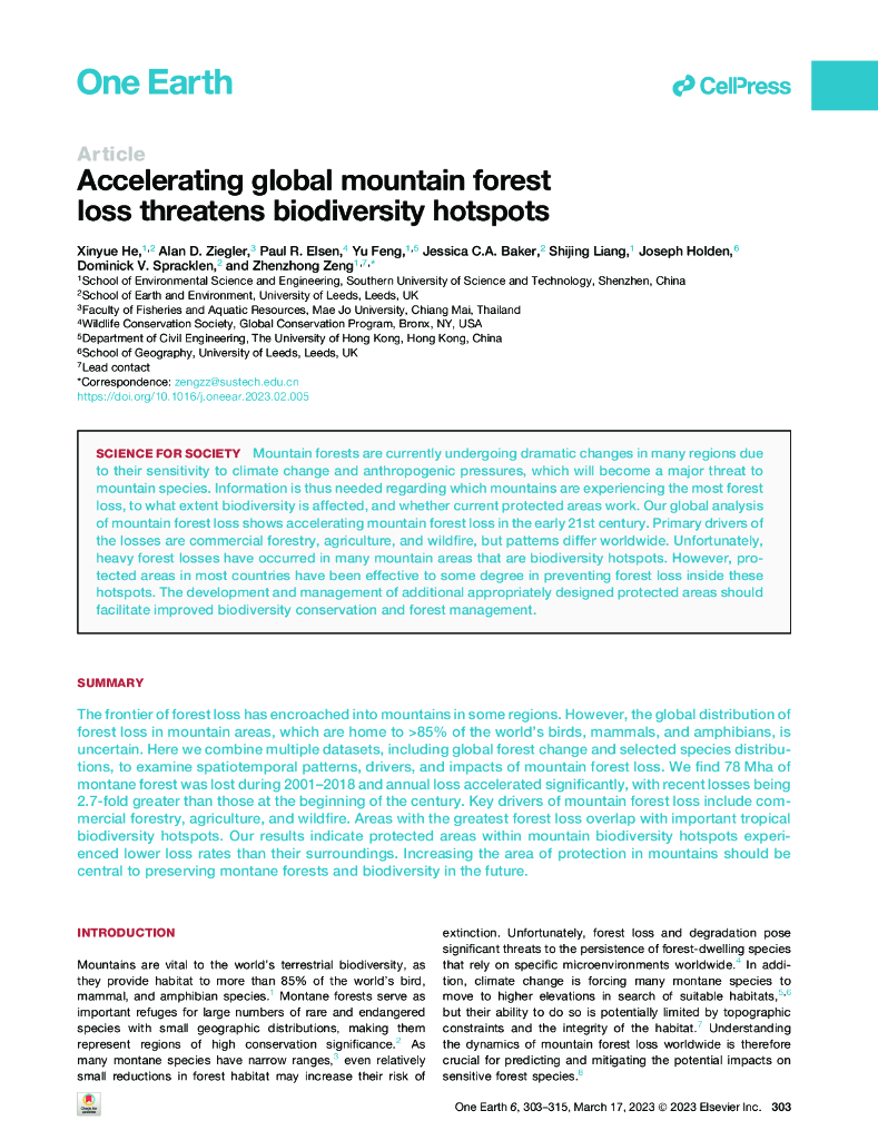 CelPress:加速全球山地森林的消失威胁到热带生物多样性热点地区(英文版).pdf