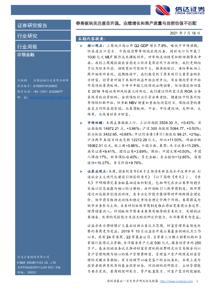 信达证券:非银金融行业周报:券商板块关注度在升温,业绩增长和资产质量与当前估值不匹配.pdf