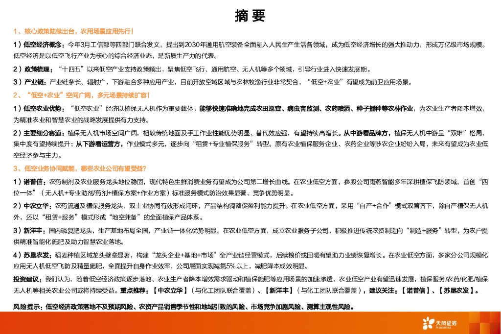 天风证券:农林牧渔:低空经济加速起飞,哪些农业公司有望受益?.pdf