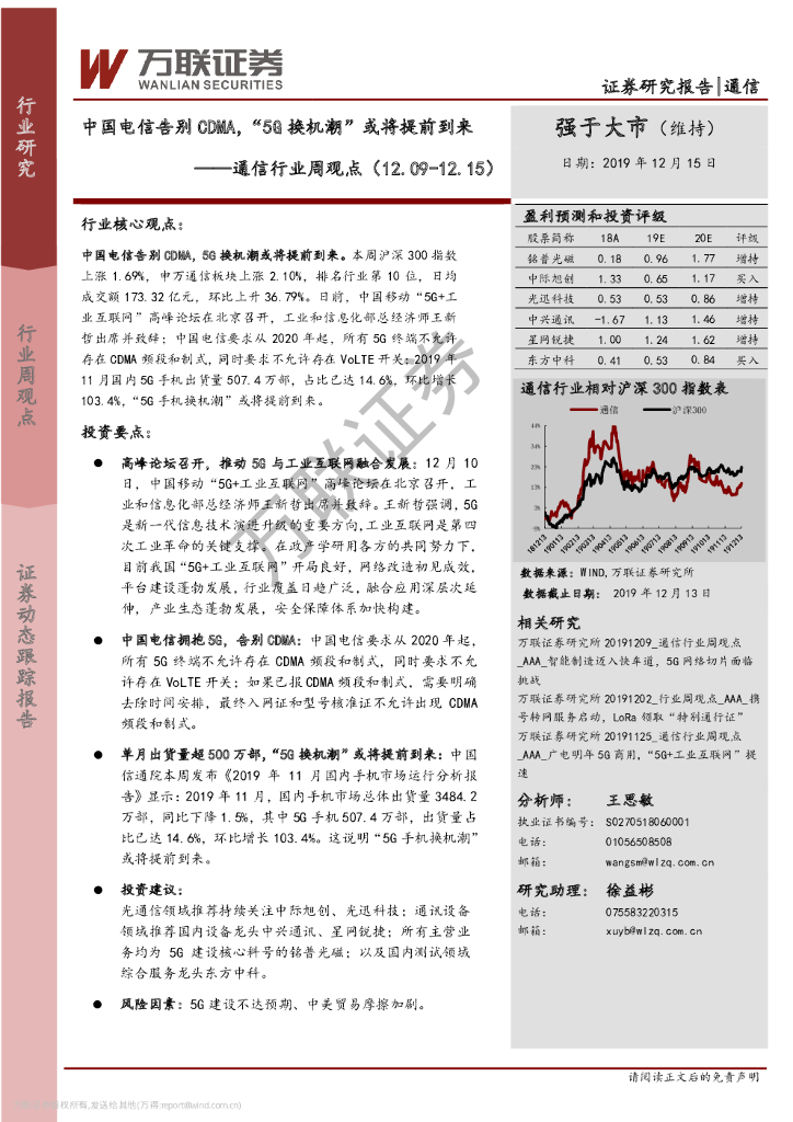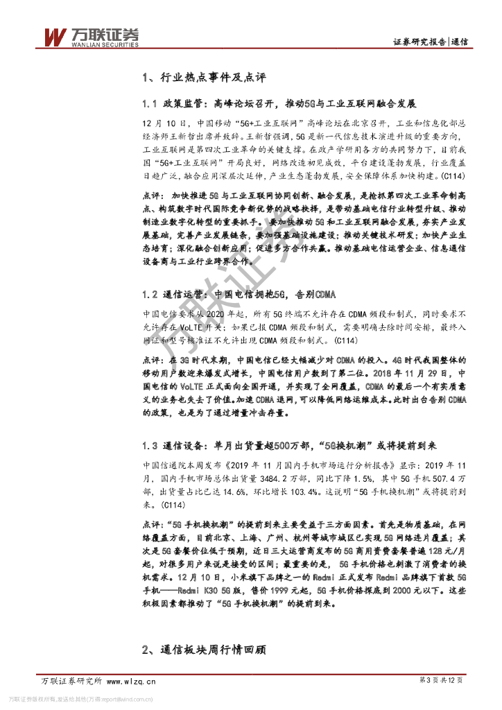 万联证券:通信行业周观点:中国电信告别CDMA,“5G换机潮”或将提前到来.pdf