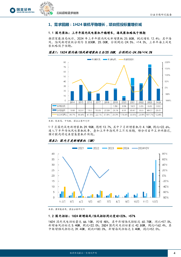 国金证券:1H24风电业绩总结:整机盈利环比改善,静待下半年海风放量.pdf