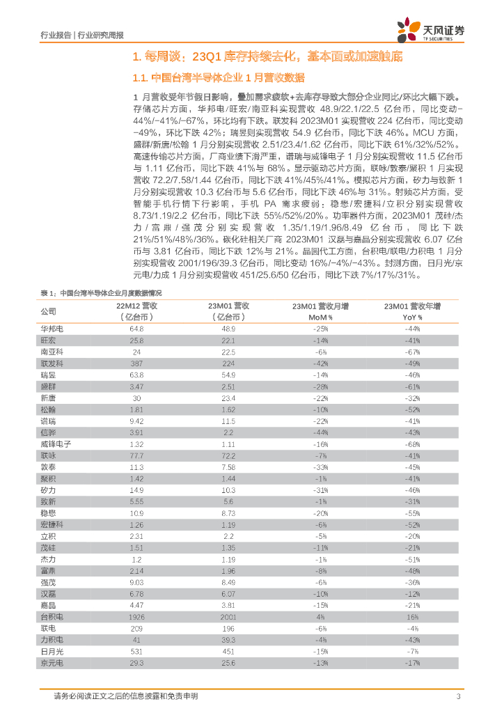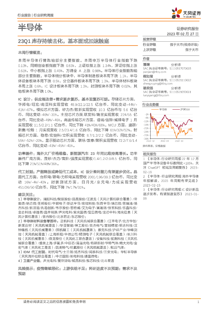 天风证券:半导体行业研究周报:23Q1库存持续去化,基本面或加速触底.pdf