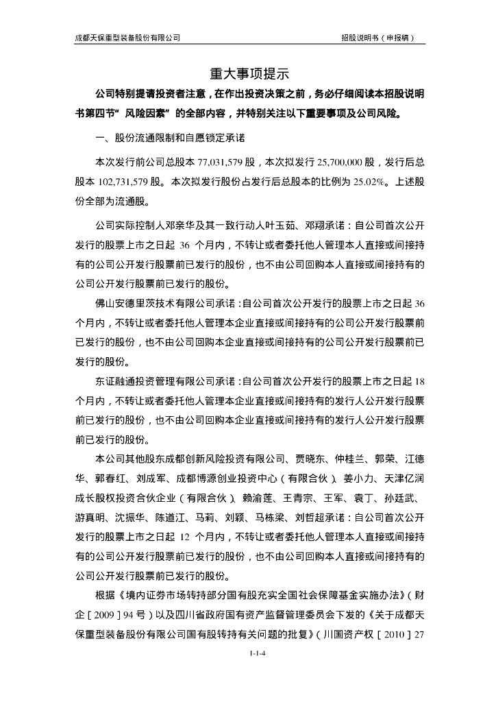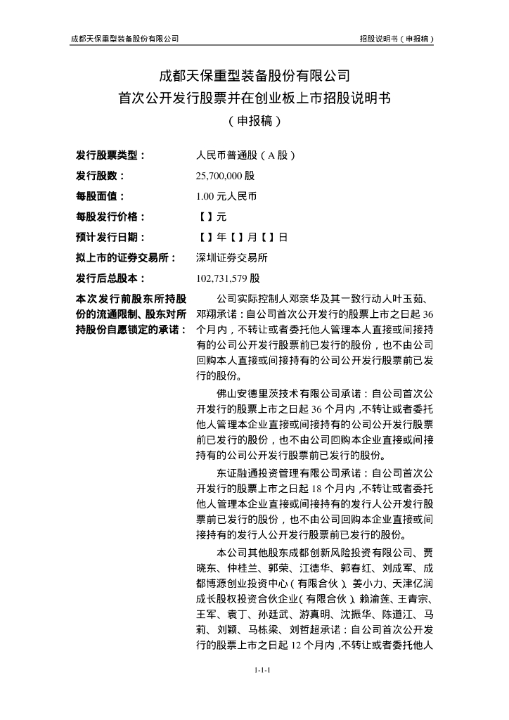 成都天保重型装备股份有限公司深交所风险警示板IPO上市招股说明书.pdf