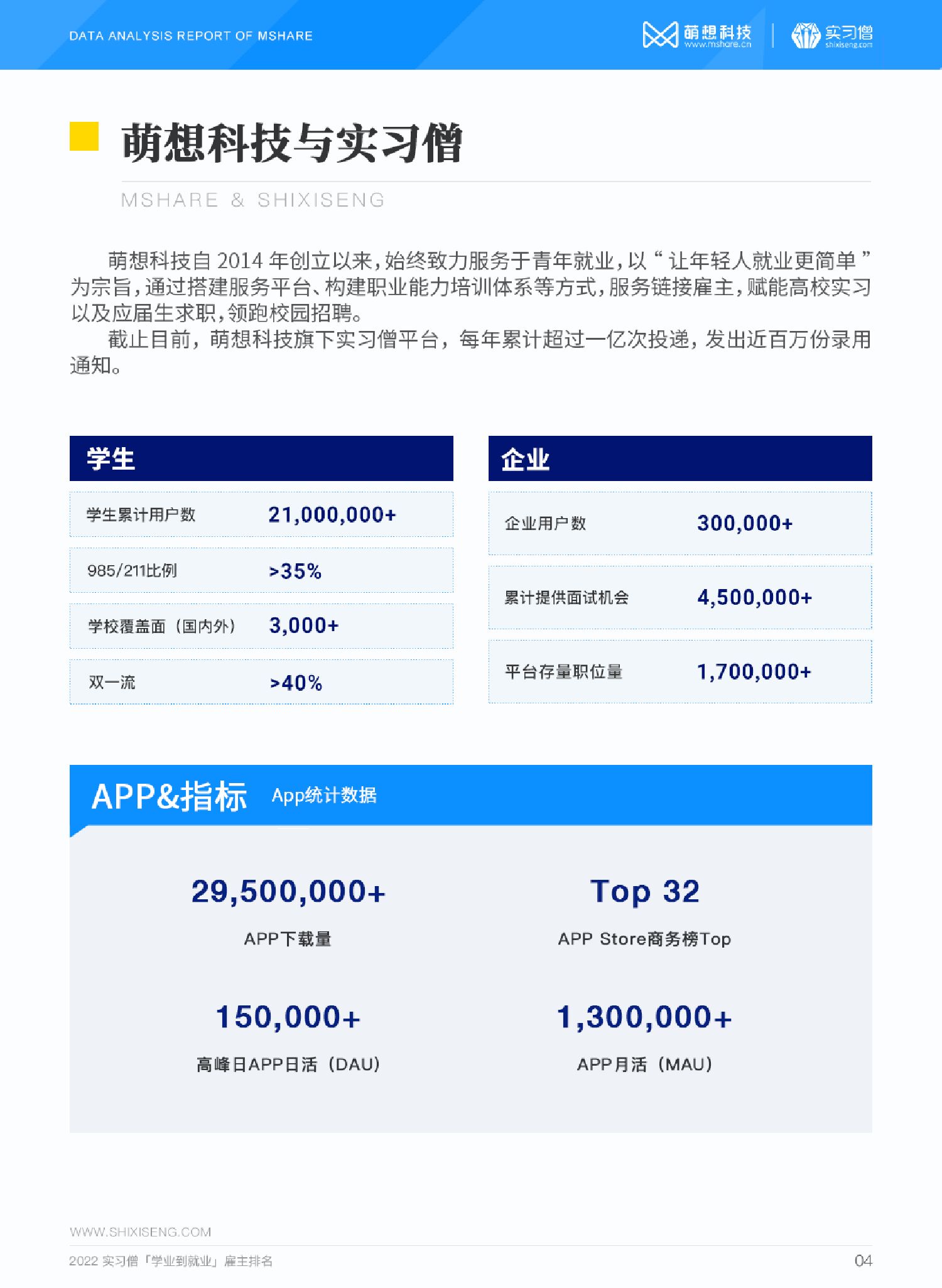 萌想科技:2022大学生学业到就业雇主排名.pdf