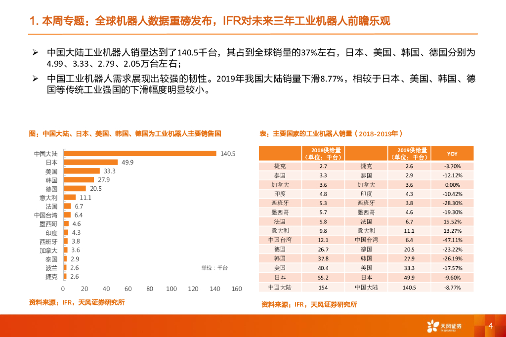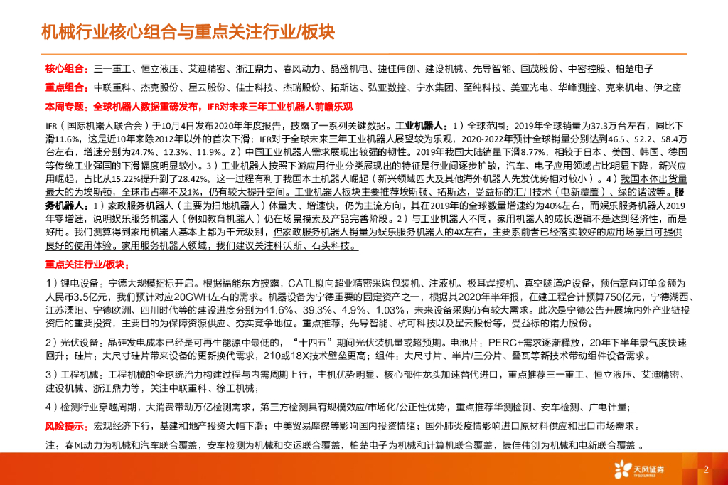 天风证券:机械设备行业研究周报:IFR对未来三年工业机器人前瞻乐观,光伏+锂电仍为成长主线.pdf