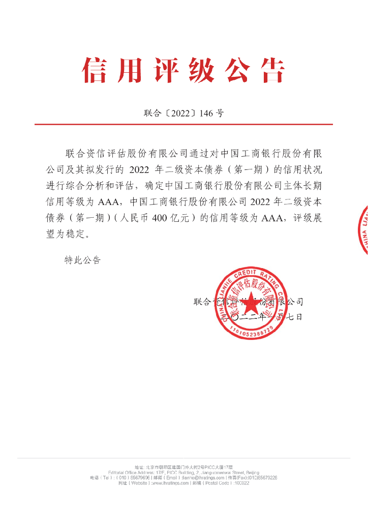 联合资信:中国工商银行股份有限公司2022年二级资本债券(第一期)信用评级报告.pdf