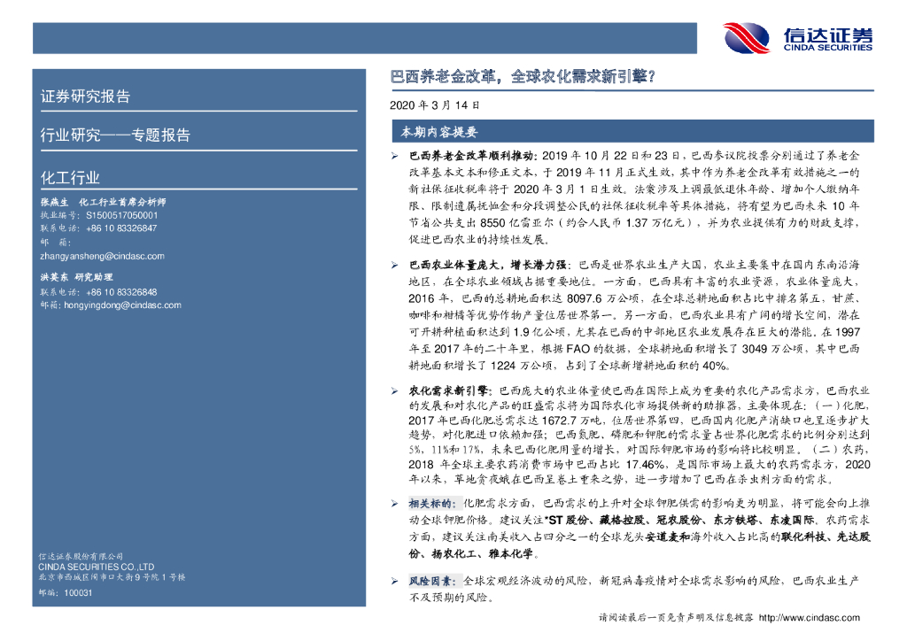 信达证券:化工行业:巴西养老金改革,全球农化需求新引擎?.pdf