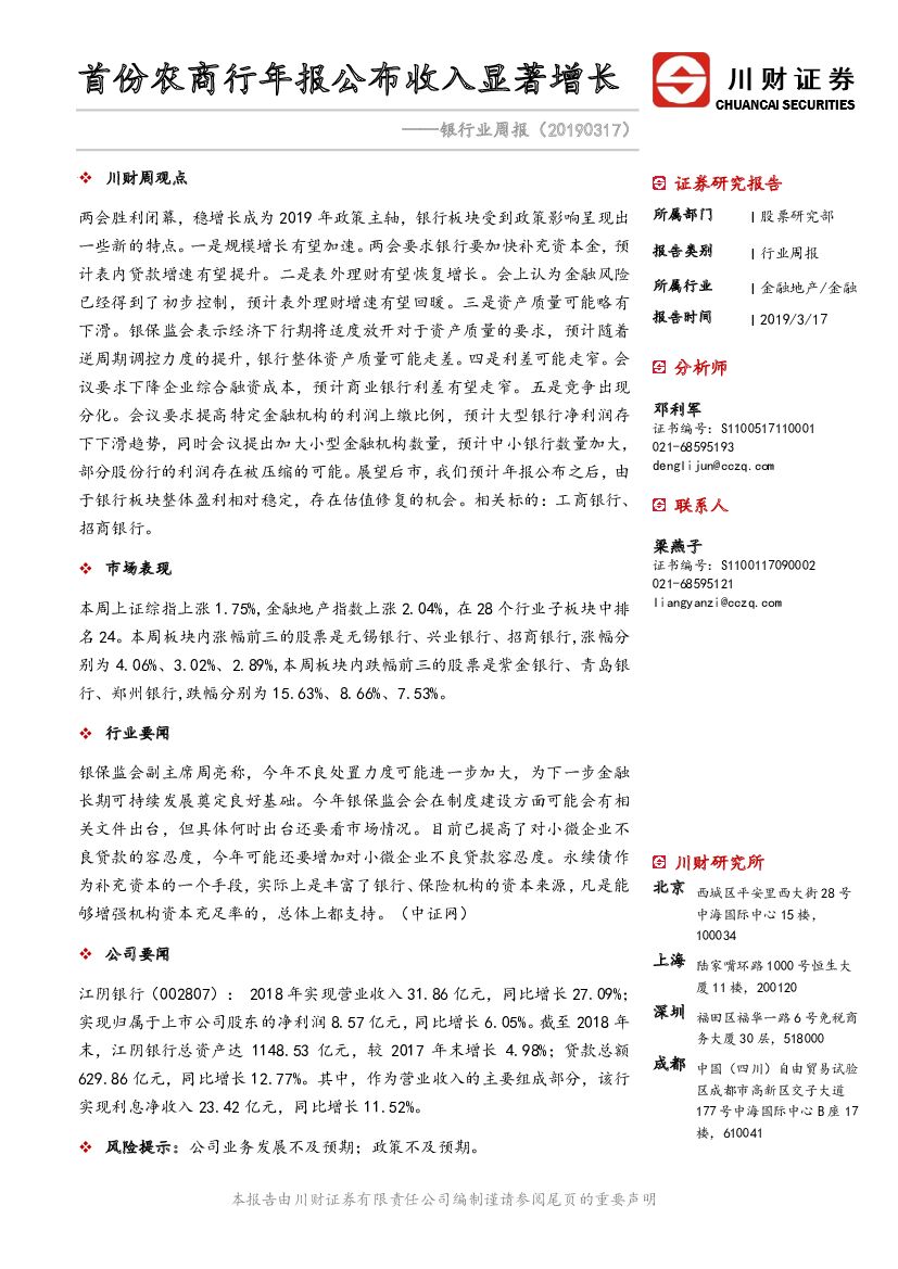 川财证券:银行业周报:首份农商行年报公布收入显著增长.pdf