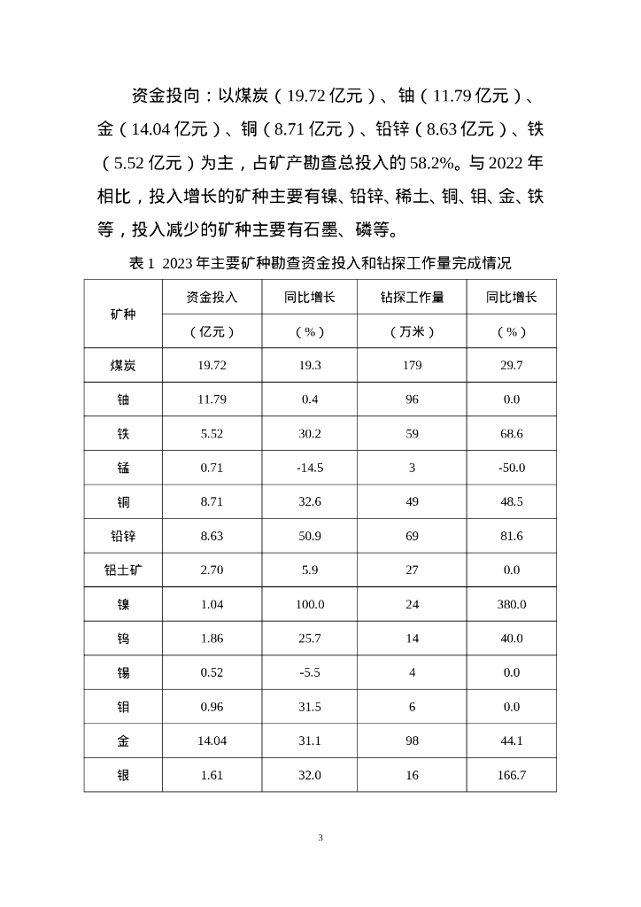 自然资源部:2023年全国非油气地质勘查统计年报.doc