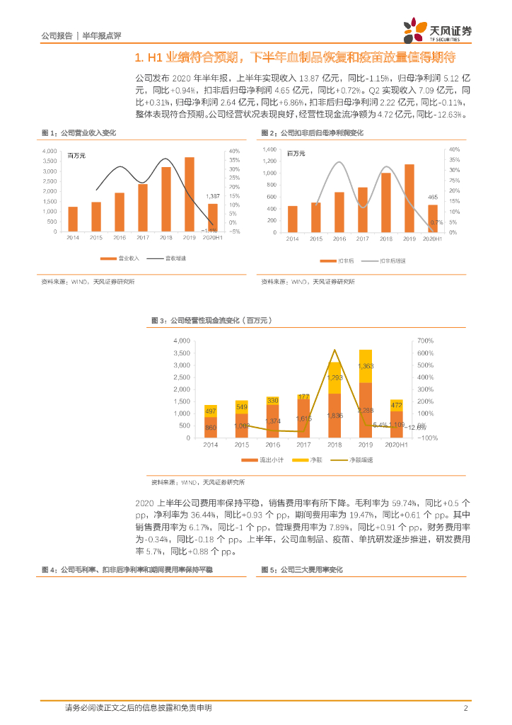 天风证券:华兰生物(002007)-H1业绩符合预期,下半年血制品恢复和疫苗放量值得期待.pdf