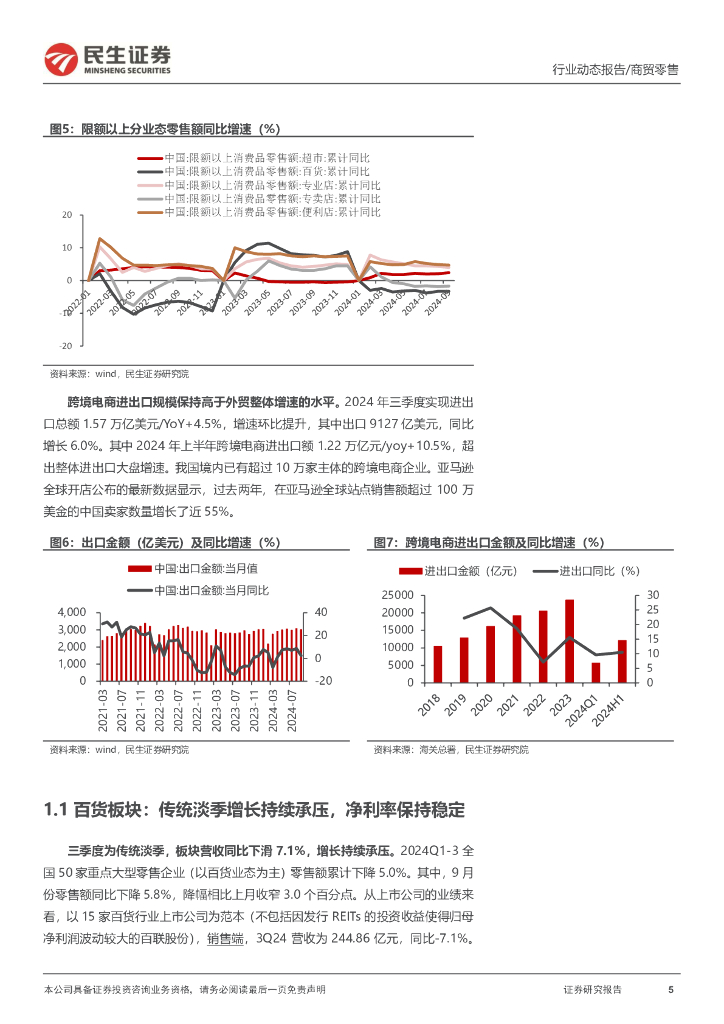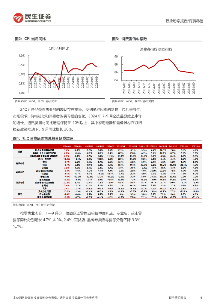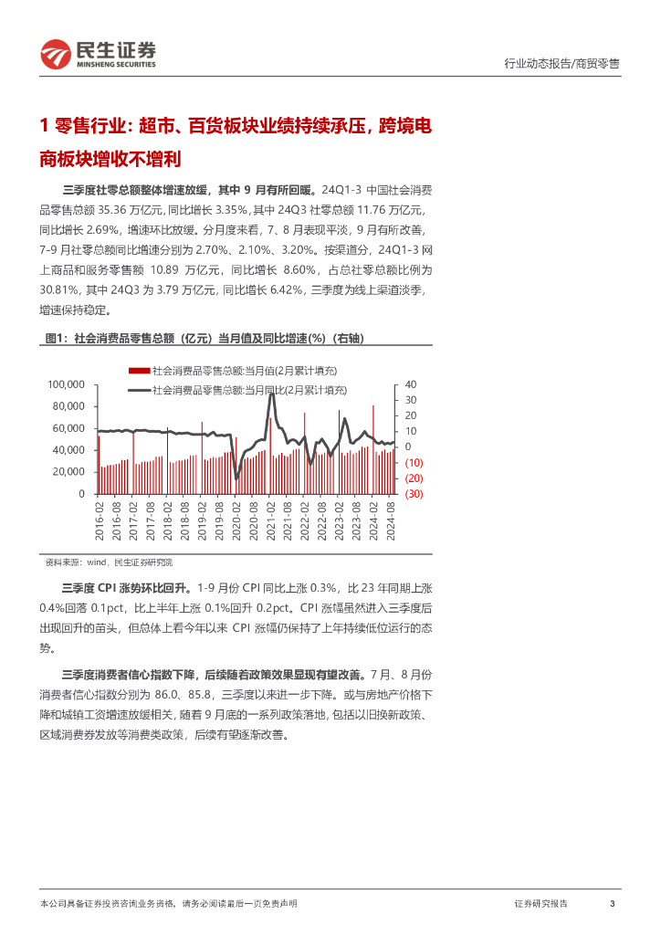 民生证券:商贸零售行业2024年三季报业绩综述:零售行业需求承压影响盈利能力,期待消费信心改善带来拐点.pdf