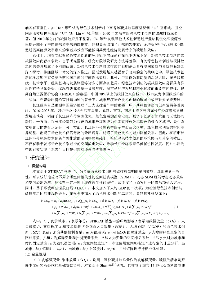长江经济带城市绿色技术创新对碳排放影响的空间效应研究.pdf