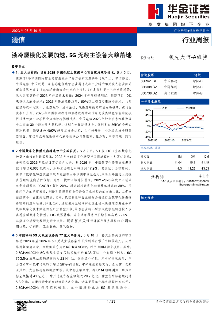 华金证券:通信行业周报:液冷规模化发展加速,5G无线主设备大单落地.pdf