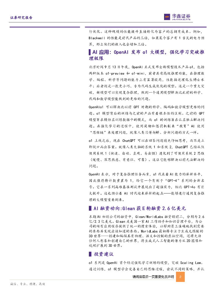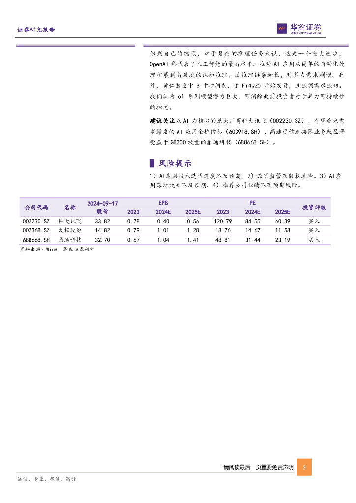 华鑫证券:计算机行业周报:黄仁勋表示英伟达将进一步扩大产能,OpenAI发布o1大模型.pdf