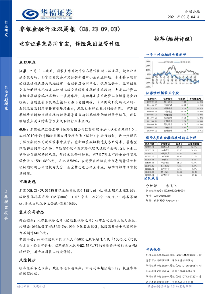 华福证券:非银金融行业双周报:北京证券交易所官宣,保险集团监管升级.pdf
