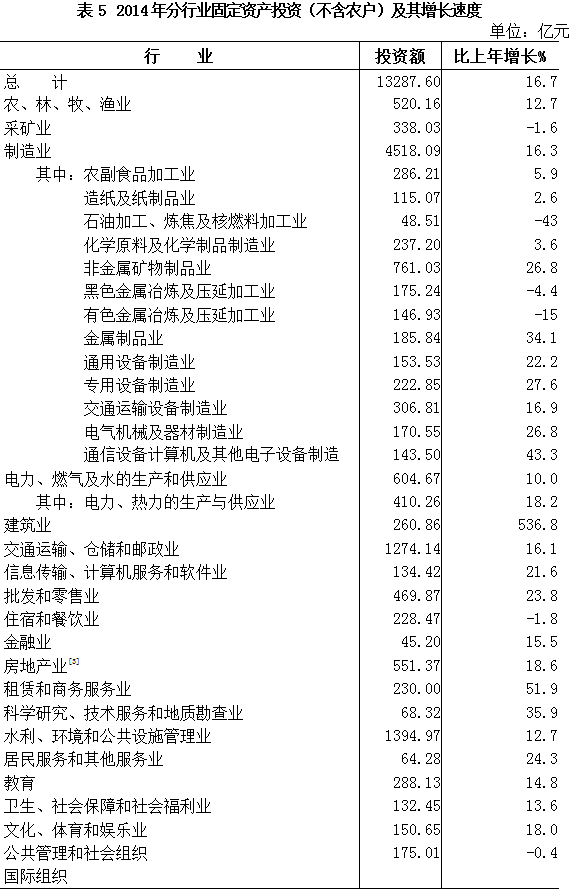 [1]本公报中2014年数据均为初步统计数。部分数据因四舍五入的原因,存在与分项合计不等的情况。
