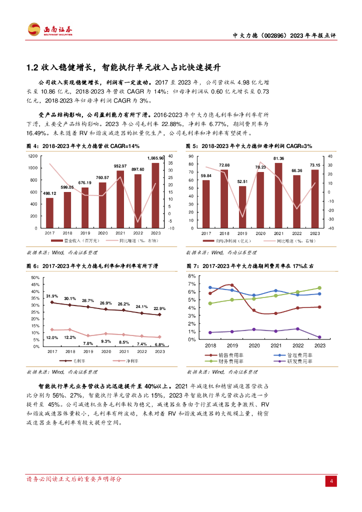 西南证券:中大力德(002896)-2023年年报点评:2023年业绩逆势增长,期待RV和谐波减速器放量.pdf