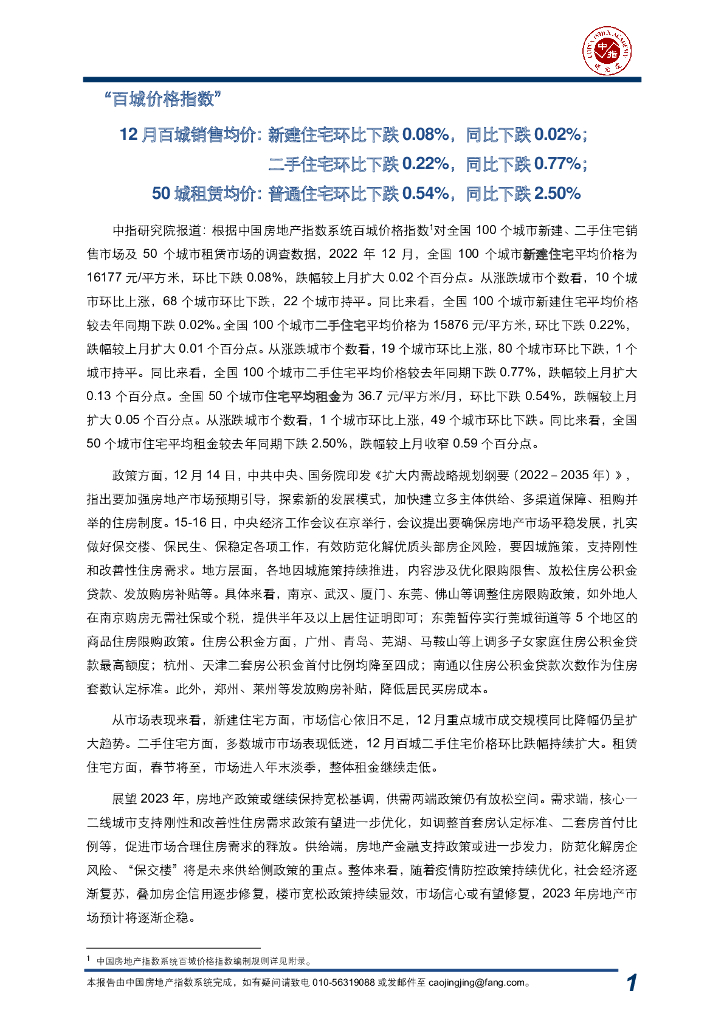 中国指数研究院:中国房地产指数系统百城价格指数报告(2022年12月).pdf