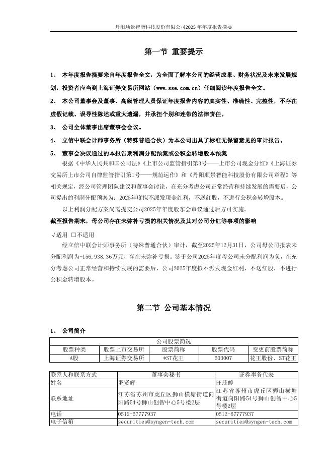603007-*ST花王:2025年年度报告摘要.pdf