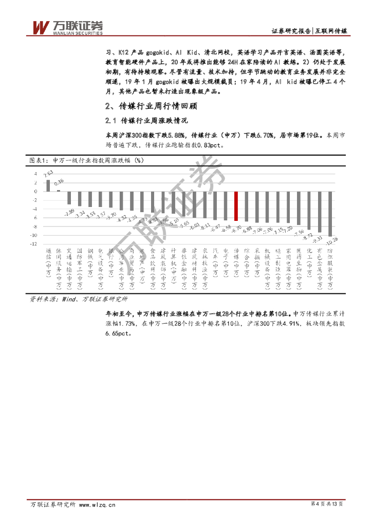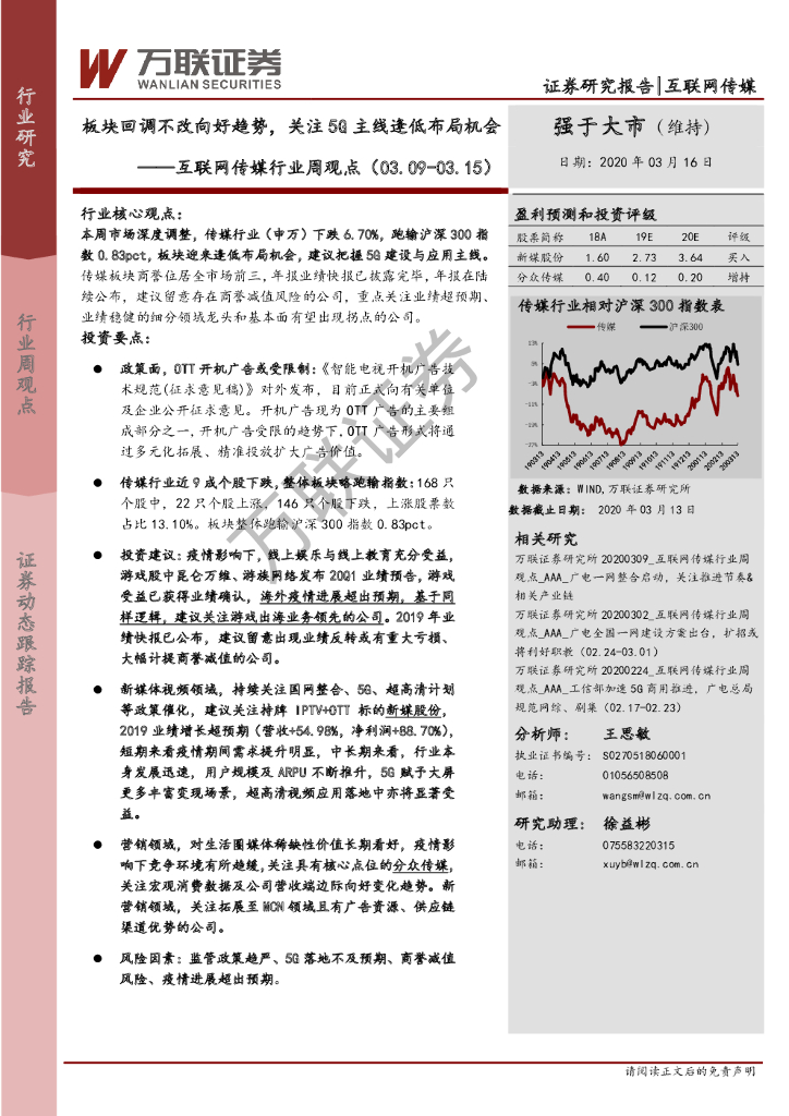 万联证券:互联网传媒行业周观点:板块回调不改向好趋势,关注5G主线逢低布局机会.pdf