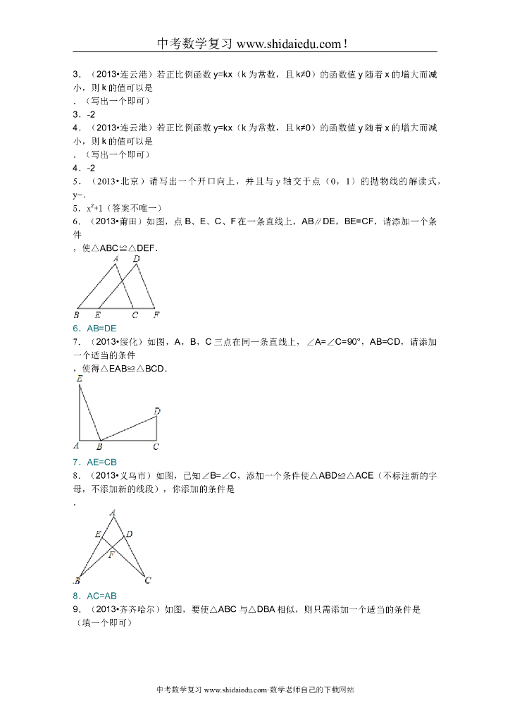 中考数学专题知识突破专题三开放型问题(含详细答案).doc