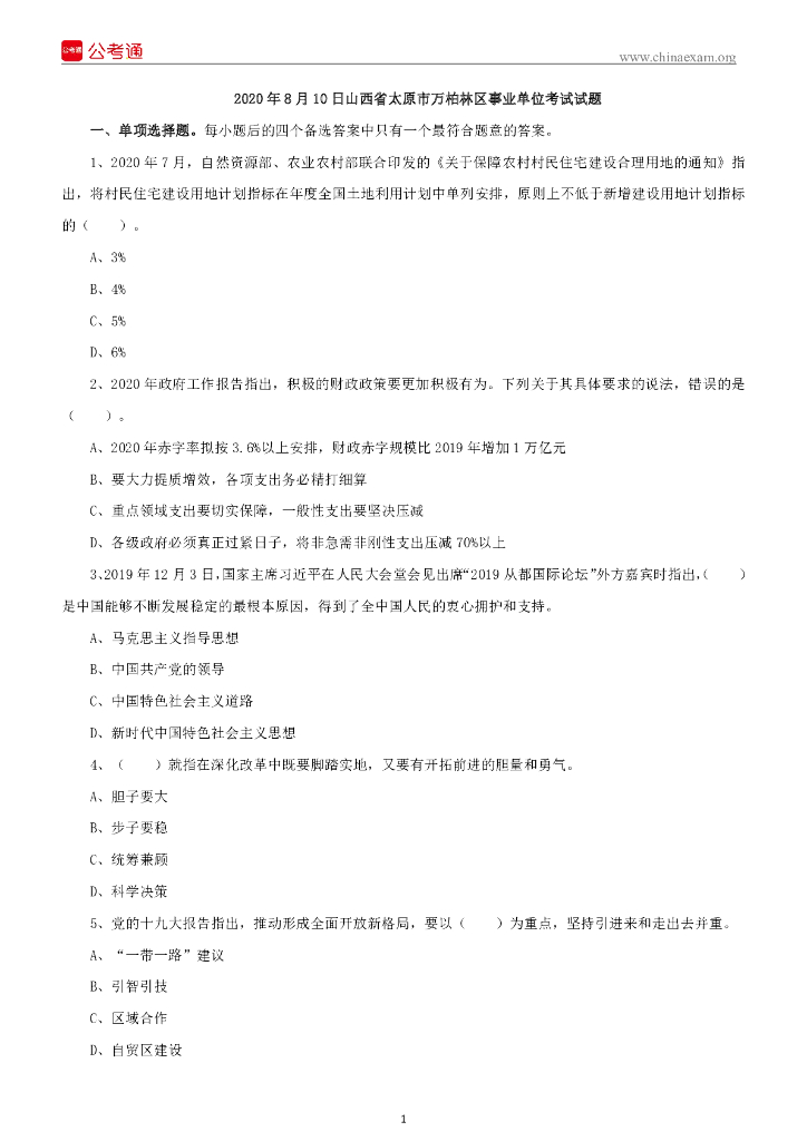 2020年8月10日山西省太原市万柏林区事业单位考试试题.pdf