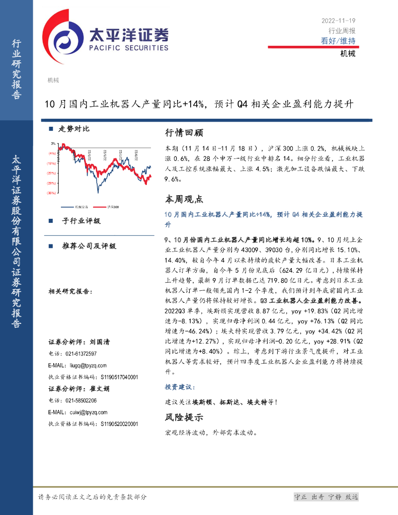 太平洋证券:机械行业周报:10月国内工业机器人产量同比+14%,预计Q4相关企业盈利能力提升.pdf