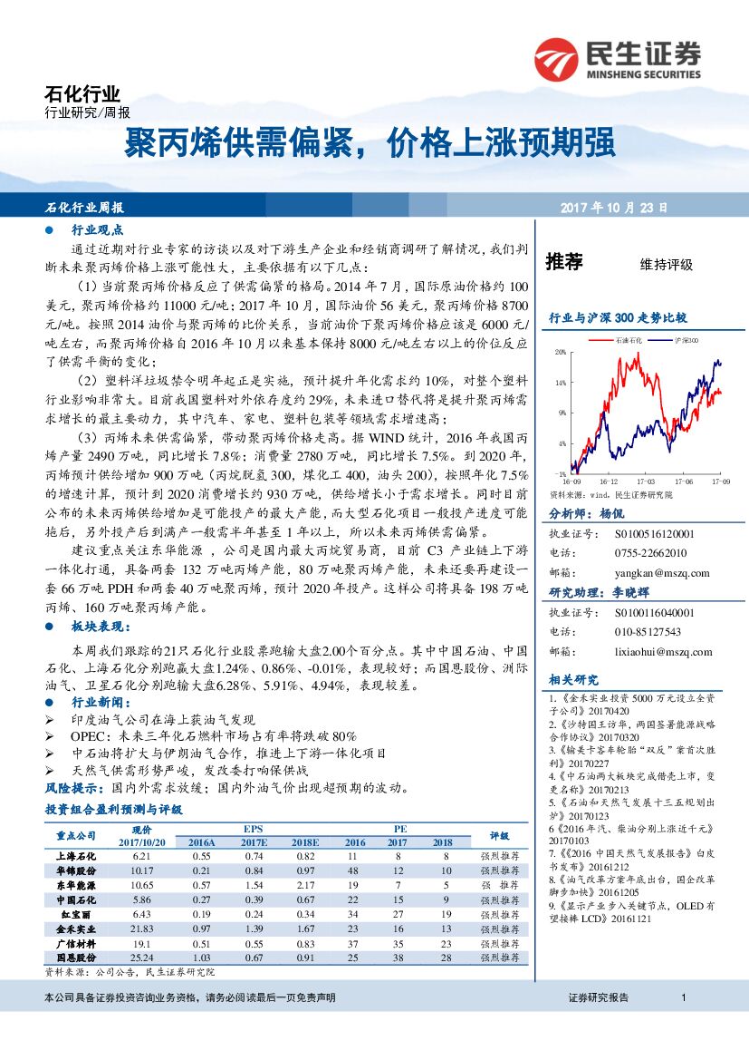 民生证券:石化行业周报:聚丙烯供需偏紧,价格上涨预期强.pdf