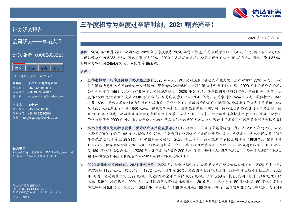 信达证券:远兴能源(000683)-三季度扭亏为盈度过至暗时刻,2021曙光降至!.pdf