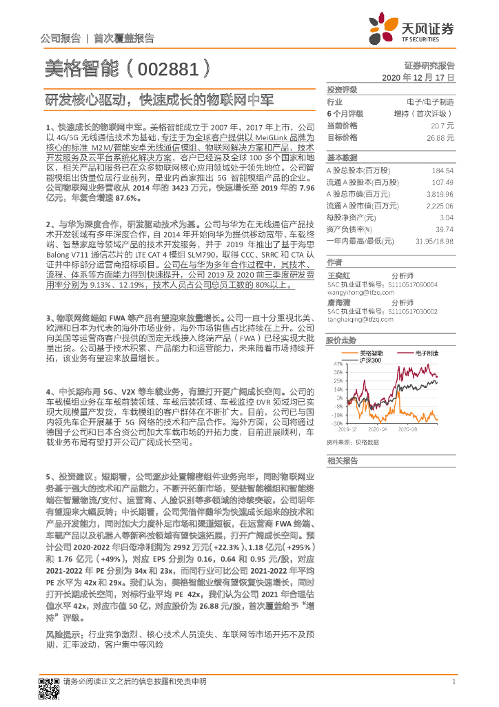 天风证券:美格智能(002881)-研发核心驱动,快速成长的物联网中军.pdf
