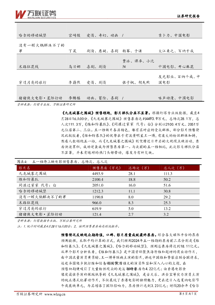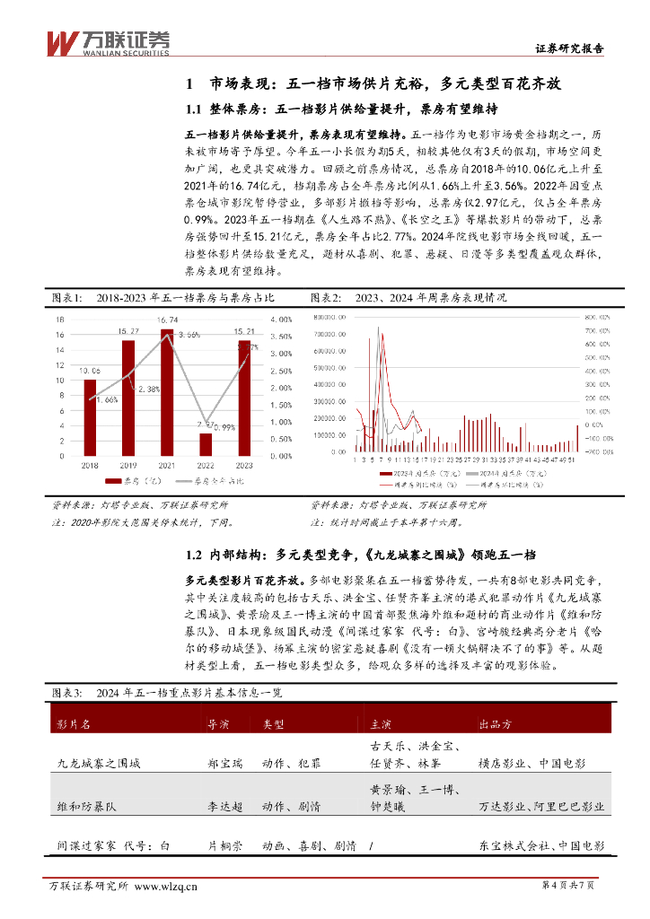 万联证券:传媒行业跟踪报告:五一档影片供给量提升,票房表现有望维持.pdf